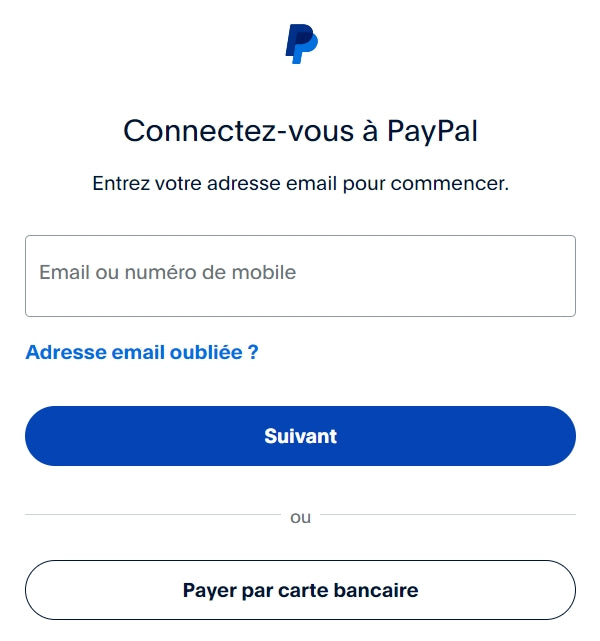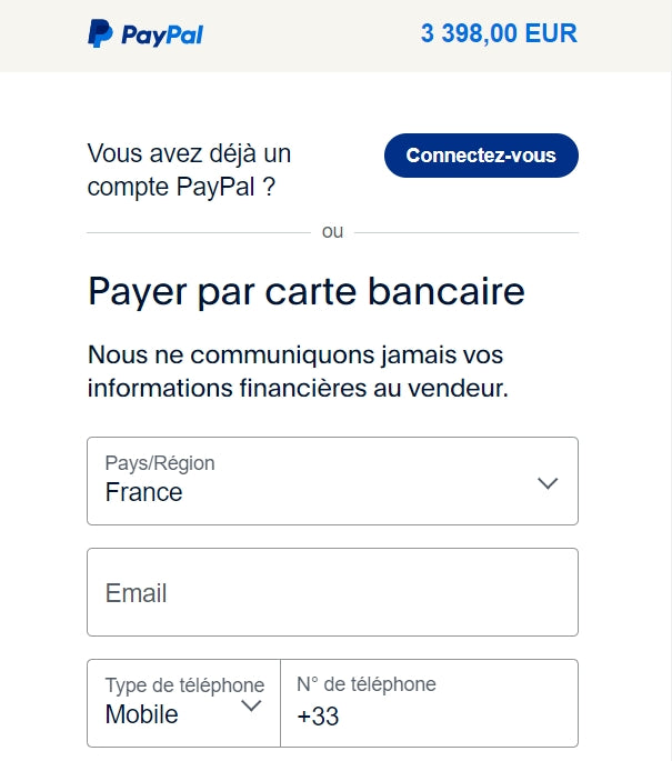 (2)Si vous décidez d'utiliser Paypal pour la caisse, vous devez vous connecter si vous avez un compte, ou choisir l'option ci-dessous pour continuer comme un paiement unique.