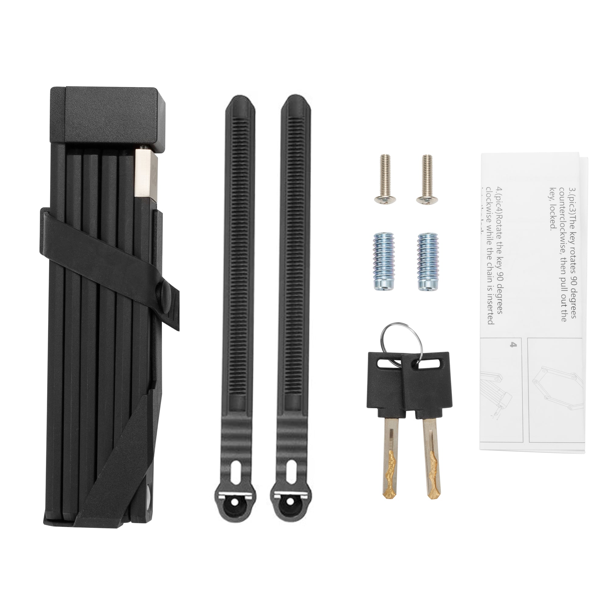 La serrure pliante convient à la plupart des vélos, elle est facile à transporter grâce à des rivets spéciaux qui facilitent le pliage.